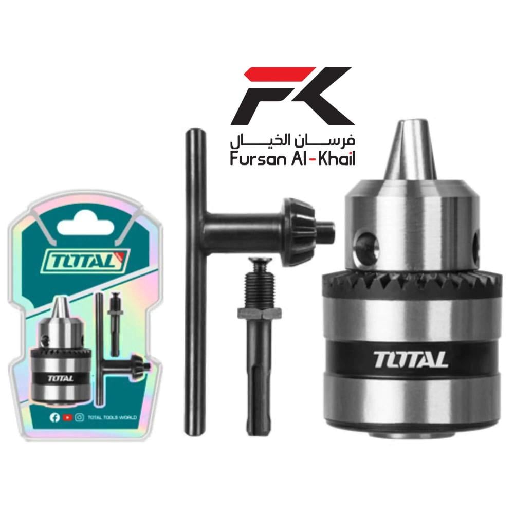رأس تشاك دريل عالي الجودة من توتال بقدرة استيعاب حتى 13 مم، مزود بمفتاح تشاك لتحكم دقيق وآمن، بالإضافة إلى محول SDS ليتوافق مع أغلب أنواع الدريلات الكهربائية. تصميم احترافي للثبات العالي وسرعة التبديل.