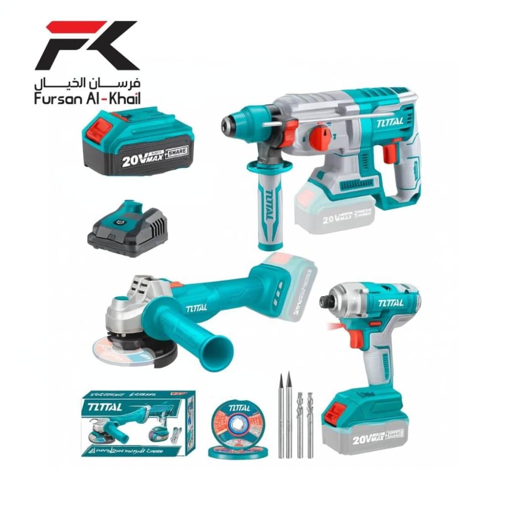 احصل على الأداء الاحترافي في ورشتك مع مجموعة الأدوات الكهربائية 3 في 1 من TOTAL. تشمل المجموعة: